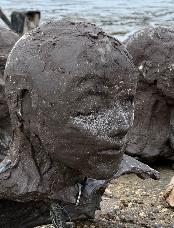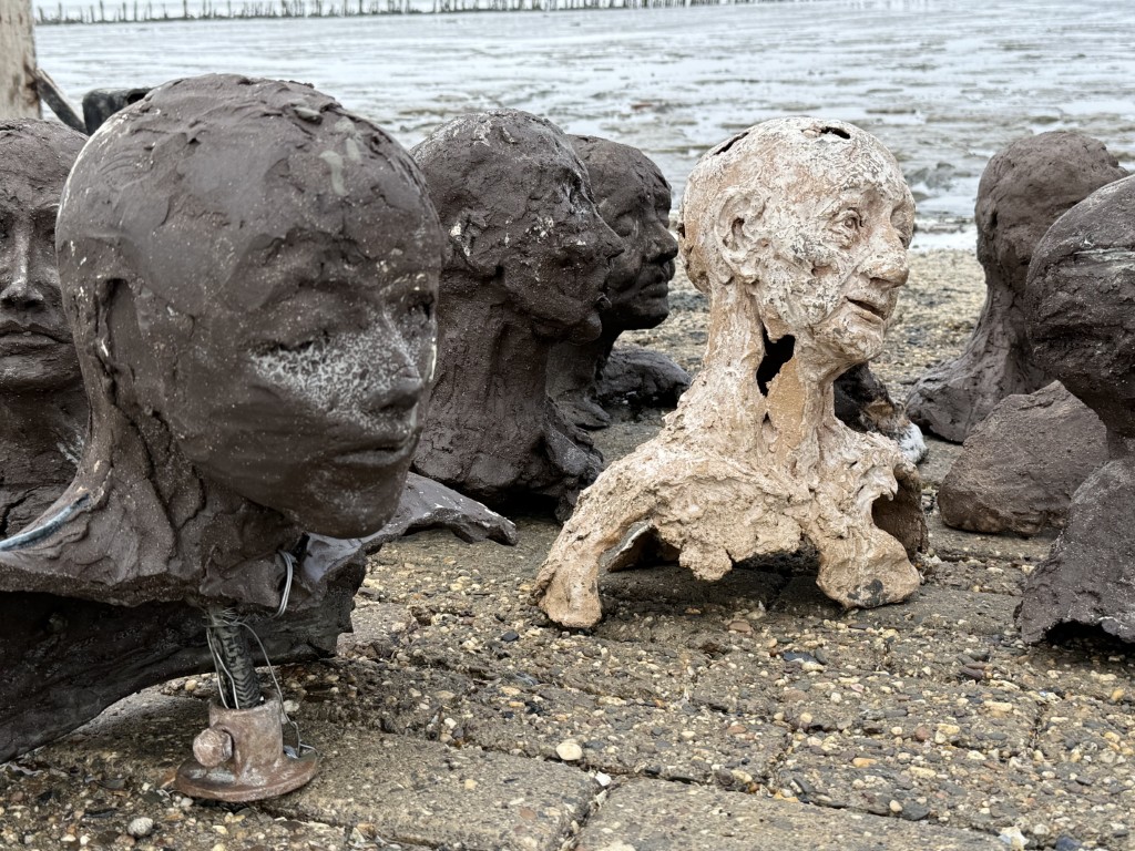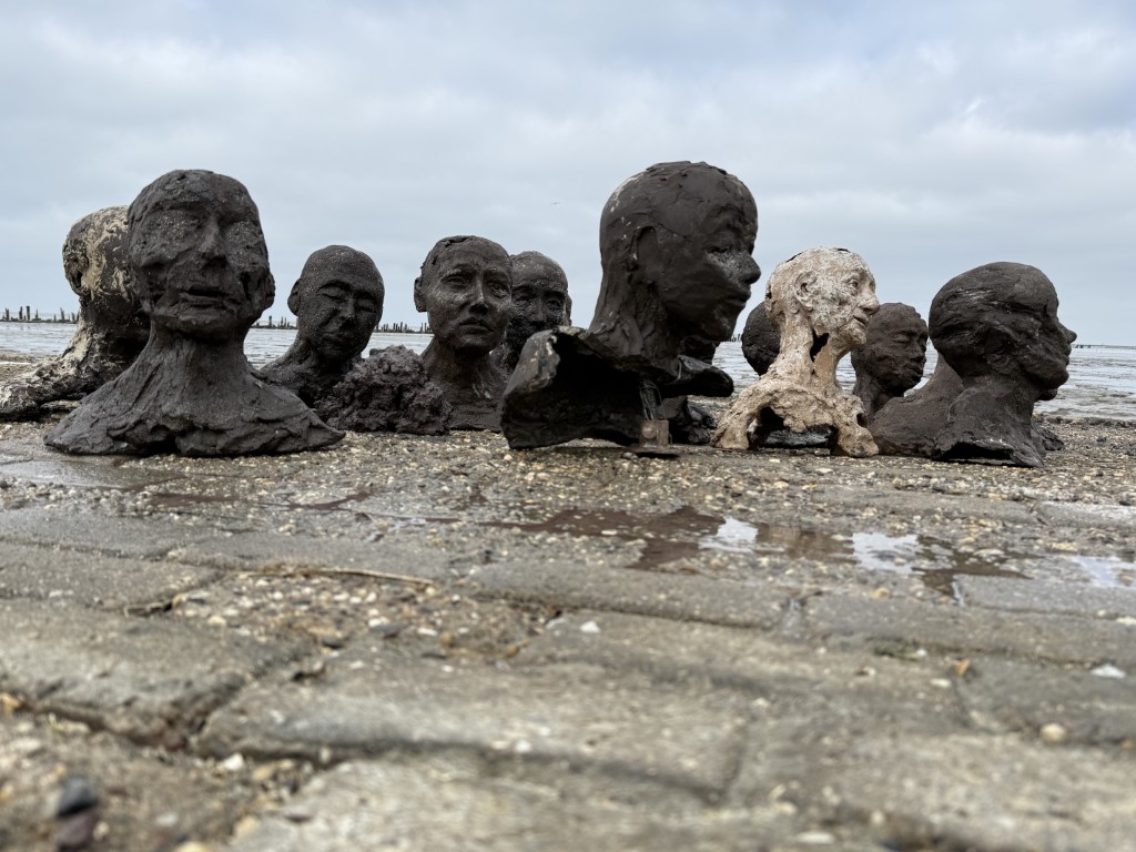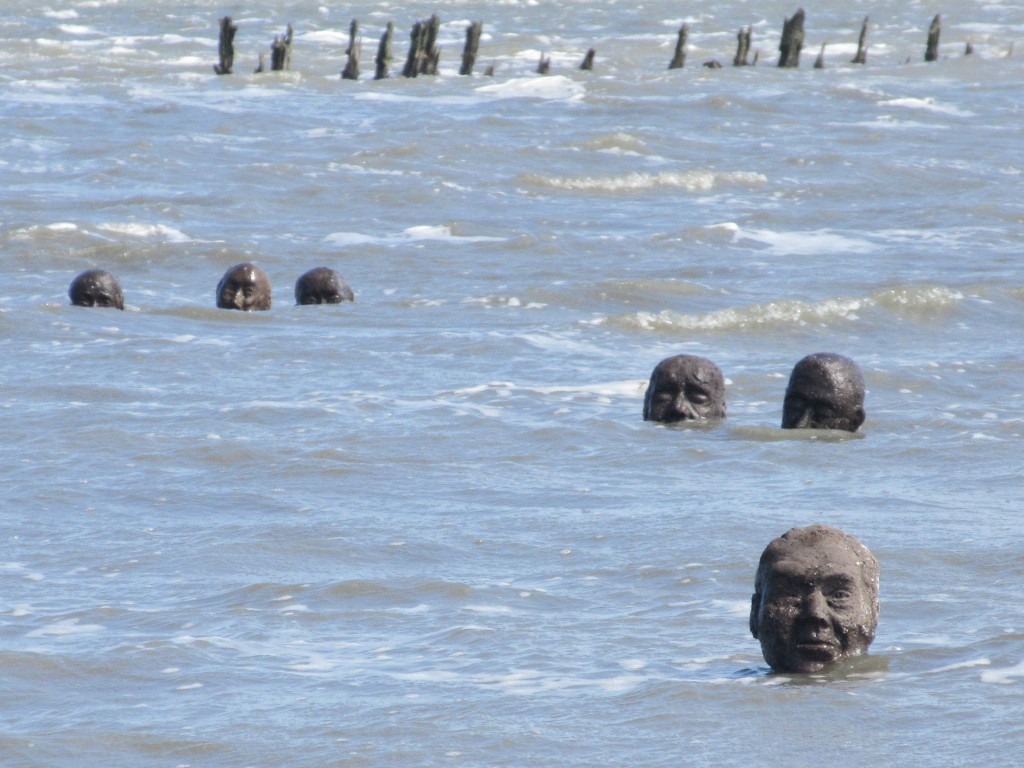 Daar staan ze, zij aan zij, als groep, alleen, afgezonderd, starend naar de zee, starend naar het land. Iedere kop verteld een eigen verhaal wat zich ergens in de tijd heeft afgespeeld. Na 12 uren zijn de koppen, die een vloed hebben getrotseerd teruggenomen. Het water heeft ze veranderd, één kop, Heit van ús Afke, heeft het niet gered.. Het is wat het is.